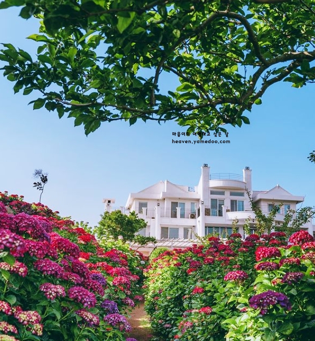 여름에는 수국이 만개하여 화려한 꽃밭을 이루며, 방문객들은 이곳에서 아름다운 사진을 찍을 수 있습니다. 다양한 색상의 수국이 어우러져 환상적인 경관을 선물해주는 카페입니다.