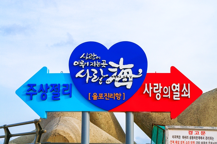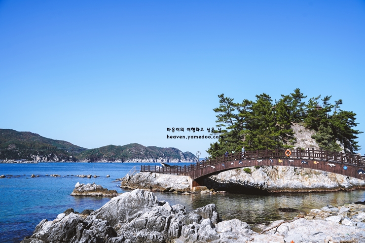 길을 따라 걷다 보면 출렁다리와 하트 모양의 해안선도 볼 수 있습니다. 출렁다리는 길지 않아 누구나 쉽게 건널 수 있으며, 다리를 건너면 읍천항과 벽화마을로 이어집니다.