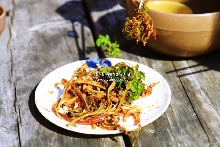 함께먹은 도토리묵도 맛있습니다. 나리분지의 평지는 울릉도 내에서 드문 평탄한 지역으로, 주민들이 농사를 짓는 곳입니다. 감자, 고구마, 호박 등의 작물이 주로 재배됩니다.