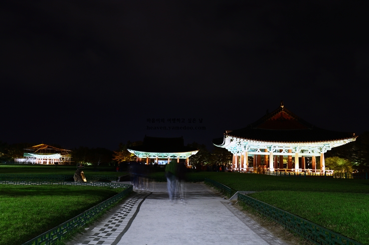 동궁과 월지는 야경으로도 유명합니다. 여름 밤에는 조명이 켜져 연못과 건물들이 환상적인 분위기를 자아냅니다. 조명이 비추는 연못의 물결은 매우 아름다워, 많은 사람들이 사진 촬영을 위해 찾습니다.