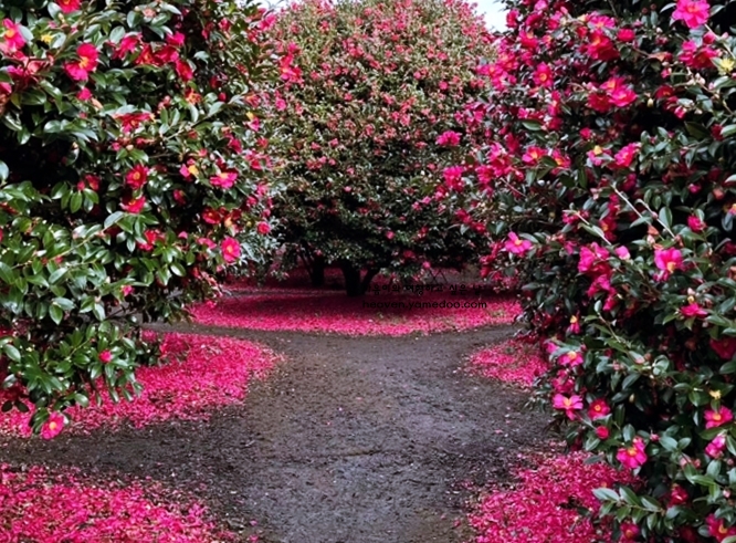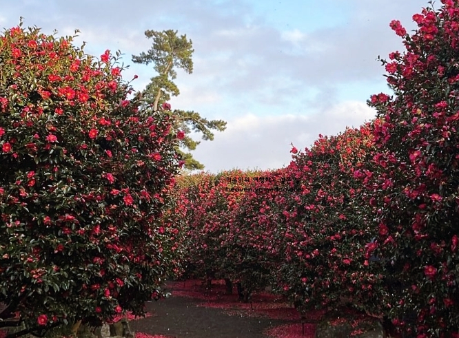입구를 지나면 좁은 산책로를 따라 붉게 물든 동백꽃이 길게 이어지며, 자연의 캔버스 위에 그려진 그림처럼 감탄을 자아냅니다. 눈부신 햇살이 꽃잎 위에 떨어질 때마다 마치 작은 보석들이 반짝이는 듯한 풍경이 펼쳐집니다.