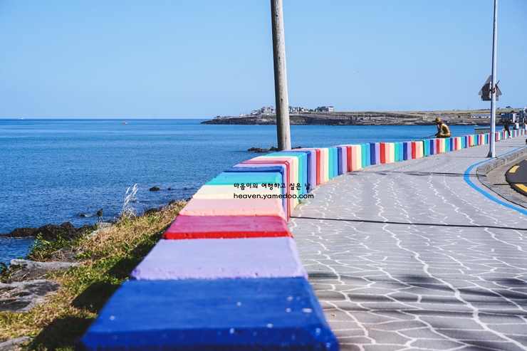겨울 특유의 맑고 차가운 공기는 바다와 맞닿아 더욱 상쾌하게 다가옵니다. 알록달록한 무지개빛 돌들이 이어진 해변은 자연의 손길로 빚어진 예술작품 같아 한참을 바라보게 만드는 1월 제주도 여행코스 2박3일 장소 입니다.