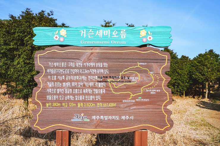 제주도의 겨울은 잔잔한 고요 속에서 새로운 매력을 선사합니다. 그중에서도 거슨세미오름은 겨울이 빚어낸 특별한 풍경을 감상하기에 제격입니다. 초입에 다가서면, 서늘한 공기와 함께 한적한 오름의 기운이 방문객을 맞이합니다.
