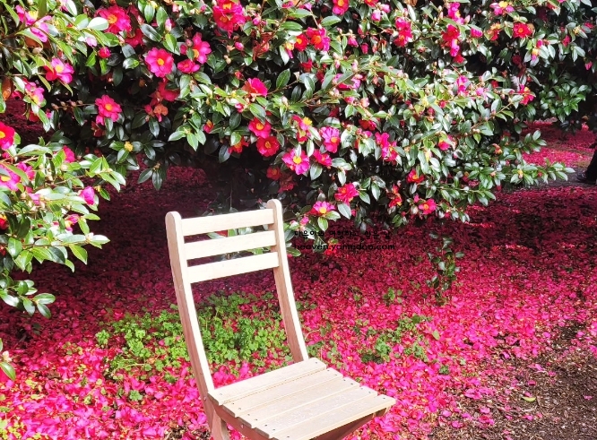 자연의 캔버스 위에 그려진 그림처럼 감탄을 자아냅니다. 눈부신 햇살이 꽃잎 위에 떨어질 때마다 마치 작은 보석들이 반짝이는 듯한 풍경이 펼쳐집니다. 가볍게 내리는 겨울비마저도 동백꽃과 어우러져 한 폭의 수채화 같은 풍경을 만들어냅니다.