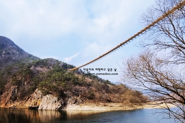 다리에서 내려다보는 풍경은 얼어붙은 계곡과 맑은 하늘이 어우러져 그림 같은 장면을 연출합니다. 방문객들은 발걸음을 멈추고 그곳에서 잠시 머물며 풍경을 감상하는 경우가 많습니다. 주변에 마련된 산책로는 겨울 특유의 고즈넉한 분위기를 더해줍니다.