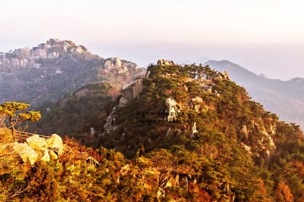 산을 오르며 만나는 바위들은 마치 거대한 예술 작품처럼 다가오는데, 그 위로 내린 눈이 부드러운 질감을 더합니다. 특히 정상에 오르면 펼쳐지는 풍경은 감탄을 자아냅니다. 멀리 펼쳐진 들판과 홍성의 마을들이 하얀 겨울빛 속에서 아련하게 드러나는 겨울에 가볼만한곳 충청도 여행지 베스트10 입니다.