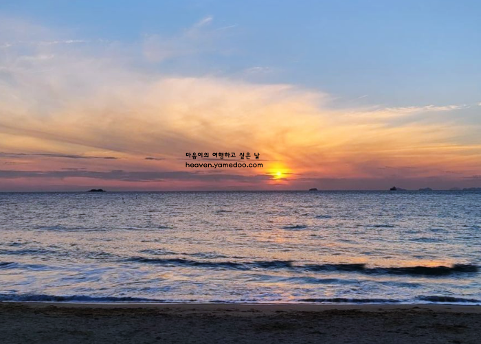해질녘 붉게 물드는 하늘과 바다의 경계는 말없이 아름다운 겨울의 마무리를 보여줍니다. 대천 해수욕장은 겨울의 고요함 속에서도 자연의 생동감을 느낄 수 있는 소중한 여행지입니다.