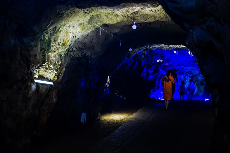 내부는 자연의 신비로움을 그대로 간직한 공간과 더불어 조명을 활용한 예술적 연출이 더해져 독특한 분위기를 자아냅니다. 동굴의 길은 넓고 평탄하게 조성되어 있어 남녀노소 모두 편안하게 둘러보실 수 있습니다.