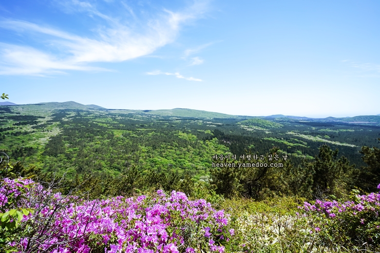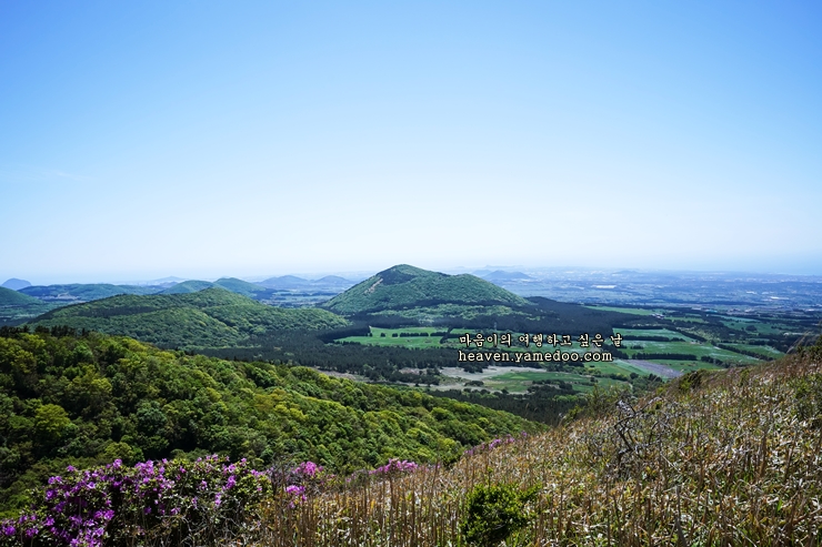 저는 운좋게 철쭉이 필 때 갔습니다. 정상에 오르면 제주 파노라마 풍경을 감상할 수 있습니다. 돈으로도 살 수 없는 멋진 풍경입니다.