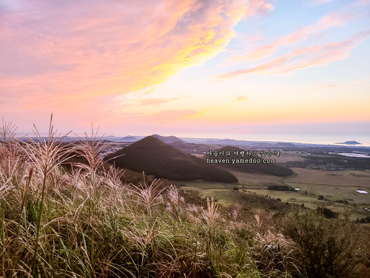 억새가 아름다운 오름으로 유명합니다. 무엇보다 제주공항에서 30분이면 만나볼 수 있는 오름여행지입니다. 지금은 휴식년에 들어간 용눈이오름과 함께 제주를 대표하는 오름이라고 생각됩니다.