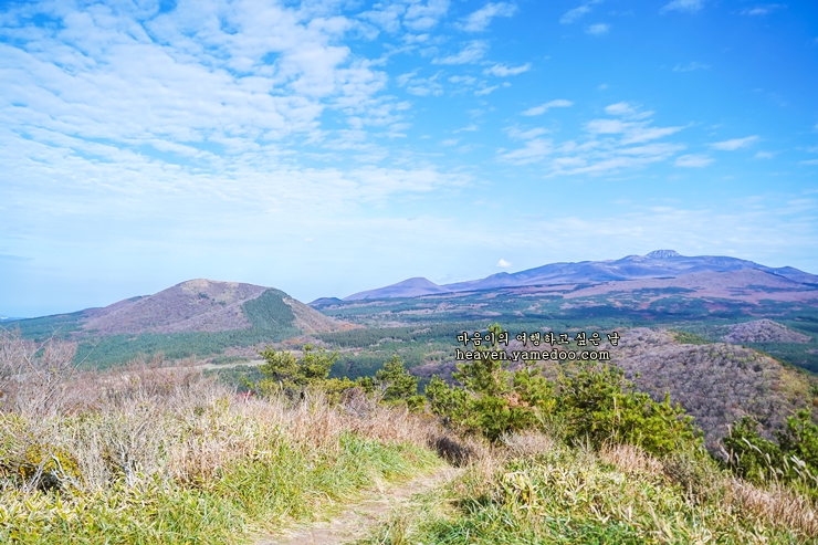 해발 833m 정상까지 소요되는 시간은 약 1시간 30분정도 걸렸습니다. 생각 이상으로 힘들었습니다. 하지만 맑은 날 정상까지 간다면 정말 멋진 한라산을 바라볼 수 있겠습니다. 특히 철쭉이 만개하는 4월에 간다면 더욱 멋지고 아름다운 풍경을 볼 수 있겠습니다.