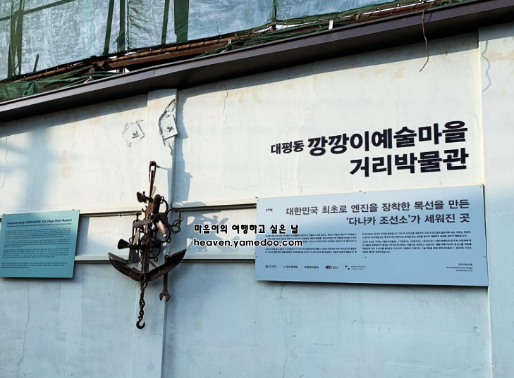 깡깡이 마을은 자갈치시장의 맞은편 영도 초입부에 위치한 예술마을입니다. tv 프로그램 다큐 3일을 보고 난뒤 찾았던 여행지입니다. 영도 대평동은 예전부터 "못 고치는 배가 없다"라는 말이 있을 정도로 조선업이 발단된 부산 가볼만한곳 베스트10이었습니다.