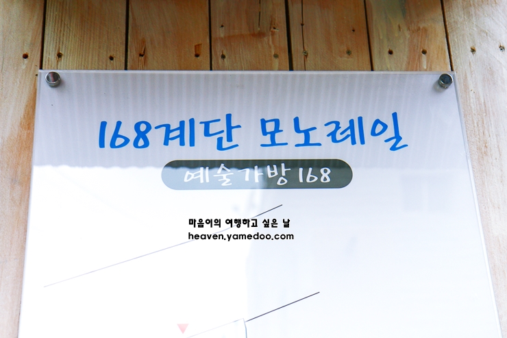 계단 바로 옆에는 168 모노레일이 설치되어 운영되고 있습니다. 마을 고령의 주민들을 위해 설치된 모노레일인데, 누구나 무료로 이용 가능합니다. 그래도 모노레일보다 168계단 올라가는 것이 더욱 좋은 여행이라고 생각됩니다.