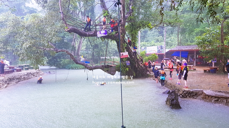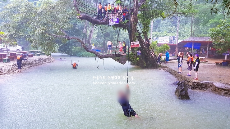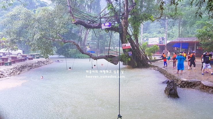 특히 제가 갔을때는 시원하게 비가 내리고 있어 물놀이를 더욱 즐길 수 있었습니다. 라오스하면 떠오르는 곳 블루라군은 물이 파랗고 맑아서 여행객들에게는 필수 여행코스입니다.