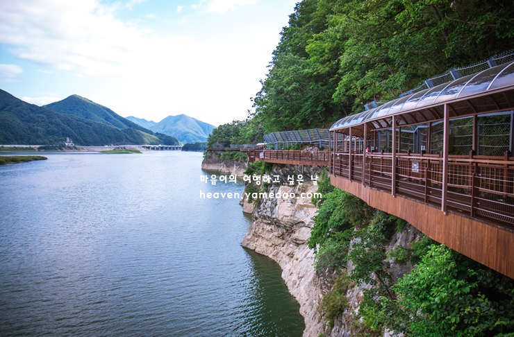 잔잔히 고요하게 흐르는 남한강을 마주하면서 직접 걸어볼 수 있는 잔도길은 만천하스카이워크 근처에 있어 함께 둘러보면 좋은 단양 가볼만한곳 베스트10 여행지입니다.