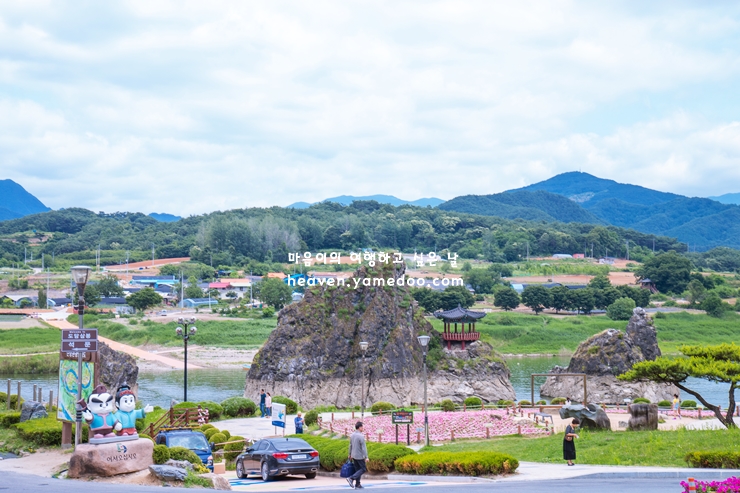 남편봉을 기준으로 아기자기한 처봉과 첩봉이 양옆에 자리잡고 있어 더욱 운취있어 보입니다. 이곳에서 조선시대 학자 퇴계이항이 시를 쓰고 정도전이 유년시절을 보낸 곳이라고 해서 더욱 유명해진 단양 가볼만한곳 입니다.