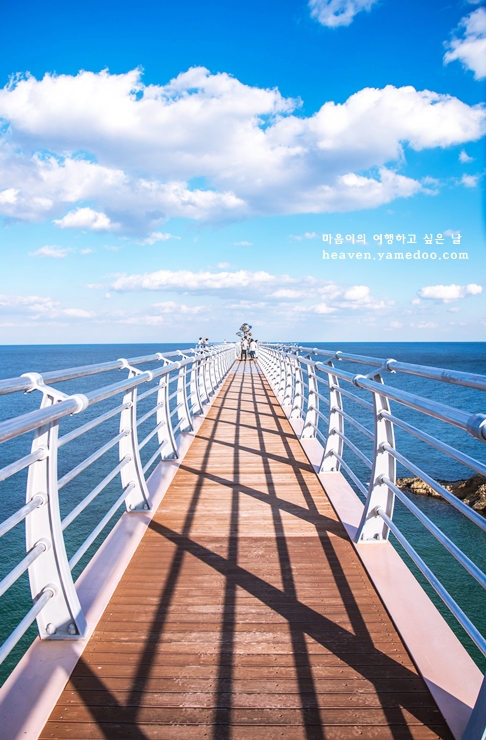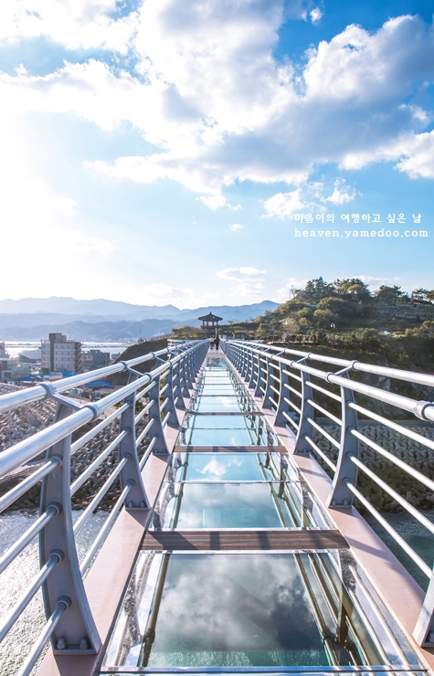 바닥 절반 이상이 통유리로 되어 있어 생각보다 훨씬 무섭습니다. 막상 올라서면 무서워 쉽게 건널 수 없을 정도입니다. 또한 어찌나 바닷바람이 세차던지 무서움이 가득했던 스카이워크었습니다.
