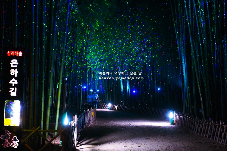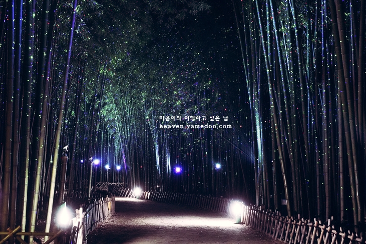 대나무숲에서 불빛이 비오듯 쏟아지기 시작하는 환상적인 아름다운 길 은하수길 꼭 걸어보시길 바랍니다.