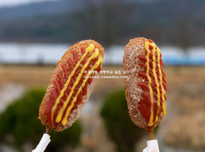 그리고 연잎핫도그는 꼭 먹어보세요. 달콤한 설탕을 묻힌 핫도그 너무 너무 맛있습니다.