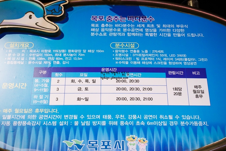 갓바위 바로 근처에 있어 바다분수쇼 본 공연이 시작되기전에만 도착하면 되겠습니다. 보이는 것처럼 분수들이 노래에 맞춰 춤을 추는 이색적인 여행장소 입니다.