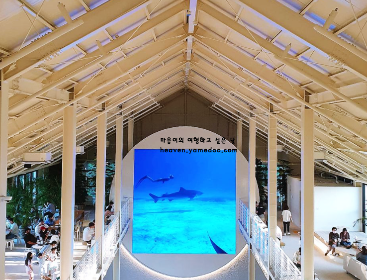 바다로 여행을 떠나고 싶은데 그렇지 못할때 방문하면 좋은 수산공원은 규모가 정말 큰 대형카페입니다. 바다컨셉의 독특한 인테리어가 독보이는 김포 가볼만한곳 베스트10입니다.