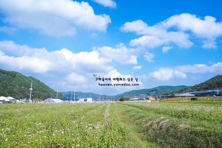너른 들판위에 가득 피어있는 코스모스와 핑크뮬리, 메밀꽃 등 가을에 볼 수 있는 모든 꽃들에게 흠뻑 취할 수 있는 9월 여행하기 좋은곳입니다.