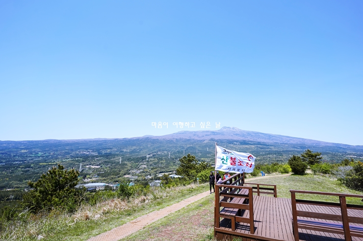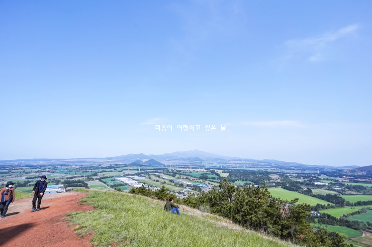 뒤편에는 한라산을 한 눈에 담을 수 있습니다. 올레길 하나의 코스로 산책하기도 좋습니다. 특히 봄에가면 진달래꽃, 철쭉꽃을 만나볼 수 있으니 봄이되면 꼭 가보시길 바랍니다.