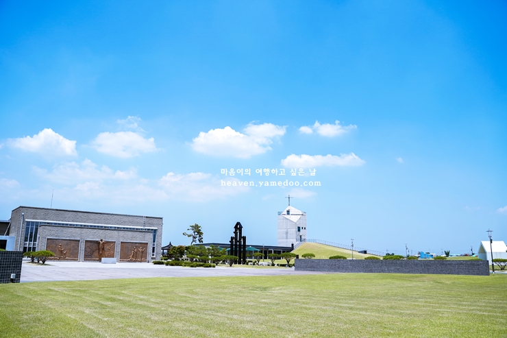한 폭의 수채화같은 아름다운 풍경이 기다리는 곳 신리성지는 조선의 카타콤바라고 합니다. 넓고 푸른 초원위에 자리잡고 있어 자연경관이 멋진 당진 가볼만한곳 베스트10입니다.