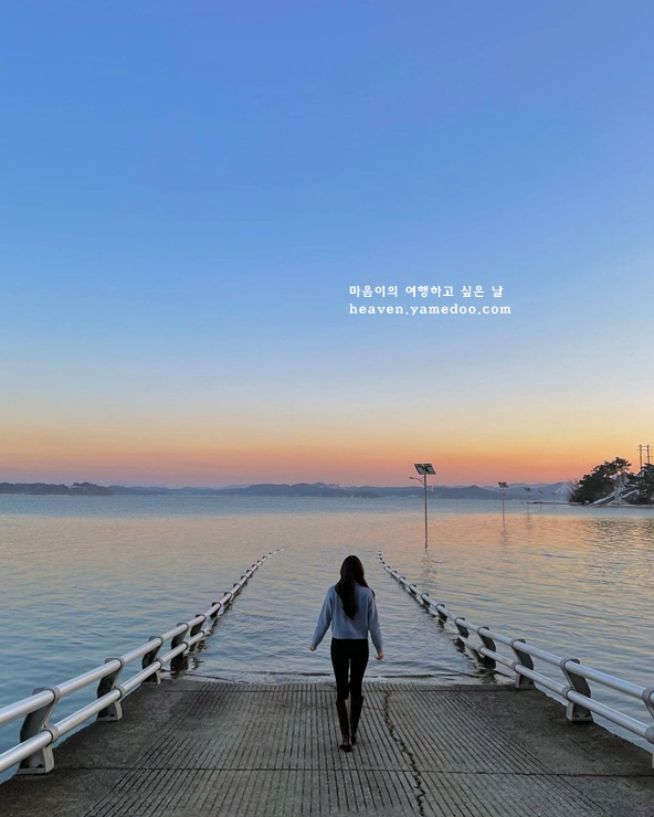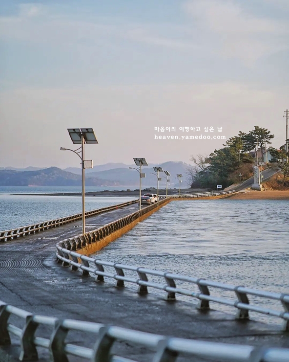 하루에 두번 잠기는 다리 서산판 모세의 기적을 엿볼 수 있는 웅도는 신비로운 풍경을 감상할 수 있습니다.