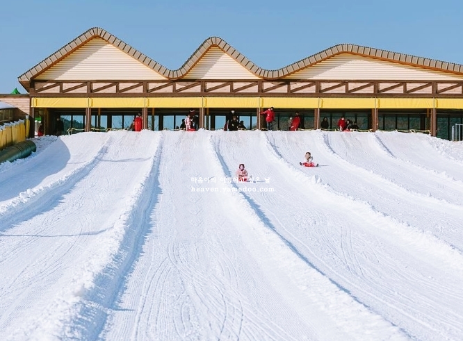 썰매장까지 걸어가지 않아도 되는 전용 리프트와 썰매 리프트를 무료로 이용할 수 있으며 눈으로 가득한 눈마을에서 아이들과 함께 눈싸움을 하거나 눈사람을 만들 수 있는 특별한 추억을 쌓을 수 있는 여행지입니다.