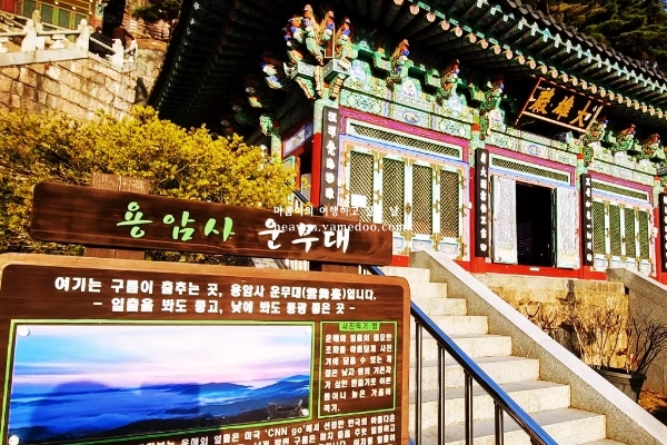 용암사는 자연경관이 뛰어나 일출과 운해를 보기 위해 많은 사진 애호가와 방문객들이 찾는 옥천 가볼만한곳 입니다. 특히 운무대에서 바라보는 운해와 일출 장관은 국내외에서도 인정받는 아름다운 풍경 중 하나입니다.