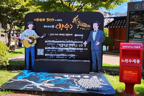 주변에는 옥천 청석교, 정지용 시 조형물, 모던 광장, 향토전시관, 옥천 청마리 제신탑 모형, 일곱 걸음 산책로 등 다양한 볼거리가 마련되어 있습니다. 장계국민관광지는 자연과 문화가 어우러진 곳으로, 대청호를 따라 걷는 산책 코스가 있어 방문객들에게 힐링의 시간을 만나볼 수 있는 옥천 가볼만한곳 베스트10입니다.