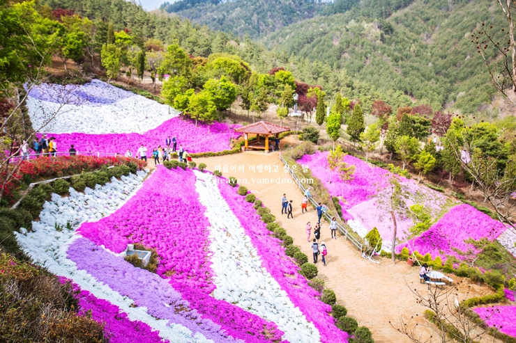 높은 곳에서 바라본 꽃잔디 풍경으 이로 말할 수 없을정도로 아름다웠습니다. 봄 여행지 베스트 50 절대로 빠질 수 없는 꽃 축제 현장입니다.