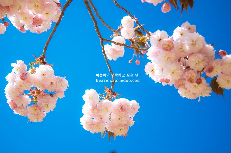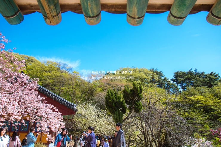 사찰로 가는 길에는 눈부신 왕벚꽃이 길가를 환하게 밝히며, 청벚꽃은 연초록의 꽃잎으로 봄을 맞이할 수 있는 봄 나들이 가기 좋은 장소 입니다.